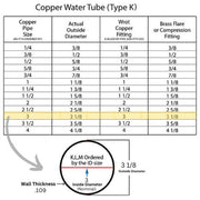 3 Type K Hard Copper 10 FT Length